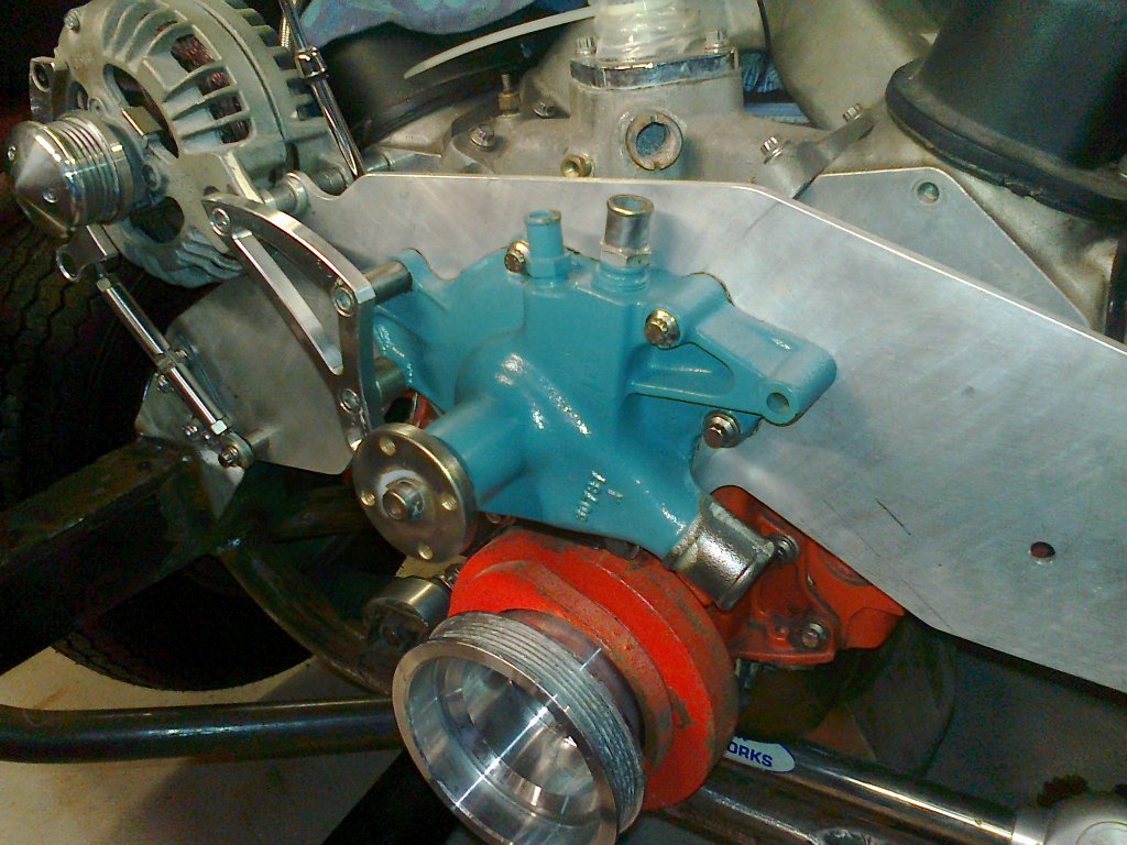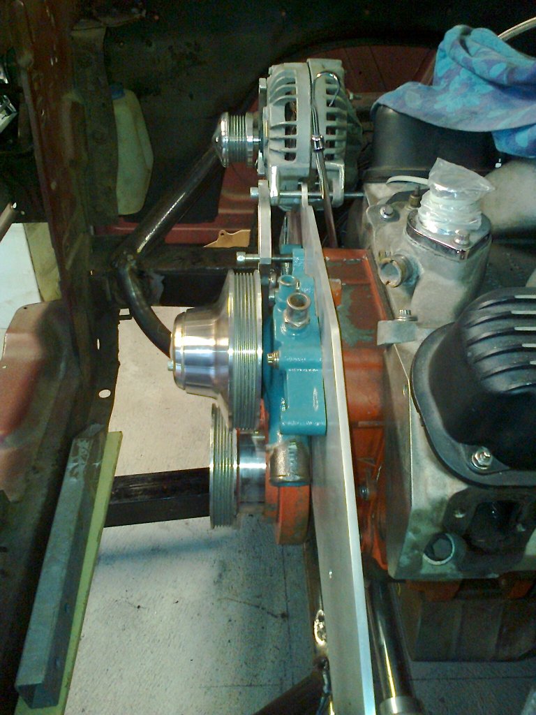 Well i've 'adjusted' the motor plate so that's now fine, found bolts that fit and worked out where the alternator will now sit. I just need to get a spacer made to stand the pump pulley 1/2" off the pump drive.